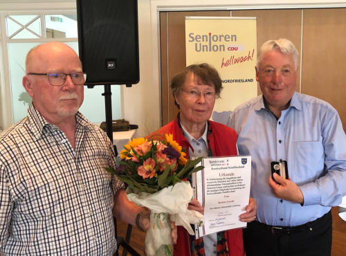 Melitta Fraude erhält EhrennadelBei der diesjährigen Jahreshauptversammlung der Senioren Union (SU) Nordfriesland zeichnete Jürgen Feddersen das Ehrenmitglied vom Ortsverband Leck und Karrharde, Melitta Fraude, mit der silbernen Ehrennadel der SU aus. „Du bist nicht nur seit 1994 Mitglied, sondern hast dich auch 24 Jahre als Vorstandsmitglied ehrenamtlich eingebracht. Protokolle, Beiträge und Berichte für die Mitgliederzeitung und besonders deine persönlichen Schreiben an jedes Mitglied zu besonderen Anlässen haben deine Arbeit ausgezeichnet“, führte der Kreisvorsitzende in seiner Laudatio an und dankte auch für die persönliche Zusammenarbeit mit dem Kreisvorstand.Knapp 80 Mitglieder nahmen an der Versammlung im Kirchspielskrug Mildstedt teil. Der Bericht des Vorsitzenden fiel relativ kurz aus, da Corona auch im vergangenen Geschäftsjahr noch eine einschränkende Rolle spielte. Seit Anfang des Jahres haben aber die sechs Ortsverbände des Kreises ihr Angebot wieder verstärkt, so dass bereits viele Versammlungen, Vorträge, Tages- und Wochenfahrten sowie vergnügliche Treffen abgehalten wurden. Feddersen verwies im Einzelnen auf das 30-jährige Jubiläum vom Ortsverband Leck-Karrharde, auf neu gewählte Vorstandsmitglieder in den Ortsverbänden und berichtete vom Besuch des Bundesvorsitzenden der SU, Prof. Dr. Otto Wulff, auf Pellworm.Der Mitgliederbeauftragte legte den Fokus in seinem Bericht auf das Durchschnittsalter der 663 Mitglieder. „Bei einem Durchschnittsalter von 79,87 Jahren müssen wir bei der Mitgliederwerbung den Blick weniger auf unsere Eltern als auf die Kinder richten“, sagte Jürgen Müller-Belzer mit einem Augenzwinkern. Im Altersband von 60 bis 70 Jahren sind nur 6,8 Prozent der Mitglieder, während 16,9 Prozent 86 Jahre und älter sind. Die „Jüngeren“ würden aber gerade für die Besetzung von Führungspositionen in den Vorständen gebraucht.Da sowohl das Protokoll von Schriftführer Gerhard Jansen als auch der Bericht von Schatzmeister Klaus Ehlers und der Kassenprüfer das Wohlwollen der Versammlung fanden wurde der Vorstand einstimmig, bei eigener Enthaltung, entlastet.Begonnen hatte die Versammlung am 16. Juli 2022 mit einem Kaffeetrinken und anschließenden Grußworten. Den Beginn machte Mildstedts Bürgermeisterin Telse Jacobsen, die einen interessanten Blick in das Geschehen der Gemeinde gab. Ihr folgte die CDU-Kreisvorsitzende Astrid Damerow. Als Mitglied des Bundestages schlug sie einen Bogen über die derzeit schwierigen Themen Krieg, Energie, Umwelt, Ernährung, Finanzen und gab einen kurzen Ausblick hinsichtlich der am 14. Mai 2023 stattfindenden Kommunalwahl. CDU-Landtagsabgeordneter Michel Deckmann bedankte sich für die ihm im Wahlkampf von allen Seiten angetragene Unterstützung, die ihm zu einem unerwartet hohen Wahlsieg verholfen hatte. Weiterhin stellte er noch seine persönlichen Schwerpunkte für die laufende Legislaturperiode vor. Nach ihm verwies der Kreisvorsitzende der Jungen Union, Leif Bodin, auf das erfolgreiche Zusammenwirken von Alt und Jung bei der politischen Arbeit der CDU in Nordfriesland hin. Zum Abschluss der Versammlung brachten die Gebrüder Appelles mit ihren Liedern noch Nachdenkliches und Heiterkeit in die Versammlung und wurden mit viel Applaus bedacht.Hier einige Fotos von der Mitgliederversammlungin Mildstedt